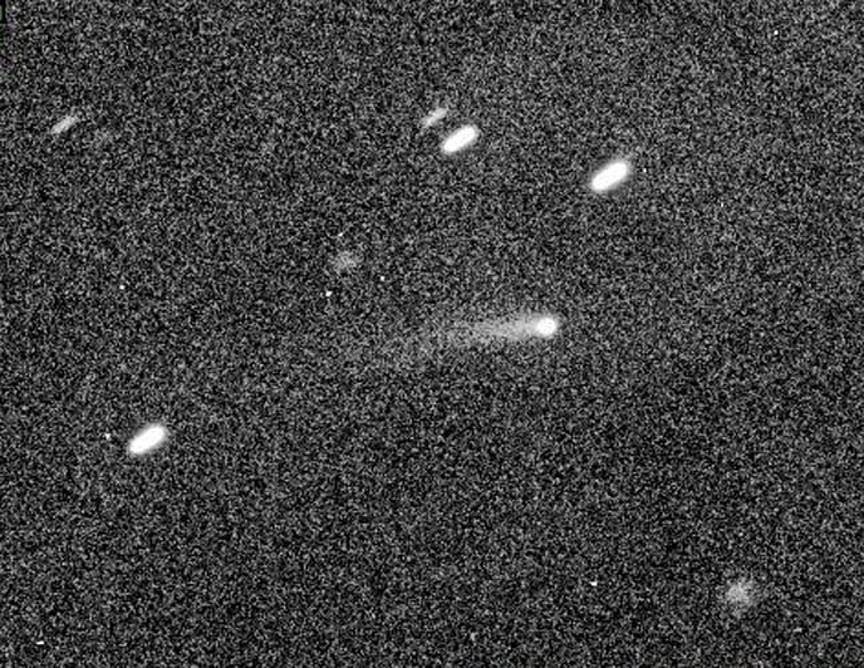 O Cometa 209/LINEAR visto em Abril de 2014. Na altura, o cometa estava ainda muito pouco brilhante com uma magnitude +17. O material que deixou aquando da sua passagem entre 1898 e 1919 poderá ser responsável por esta chuva de meteoros que irá ocorrer entre os dias 23 e 24 de Maio. Crédito: Ernesto Guido, Nick Howes, Martino Nicolini