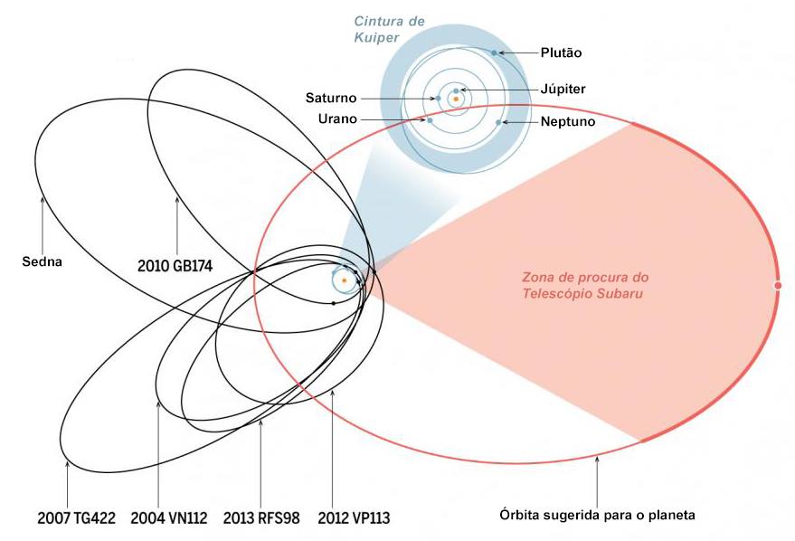 Crédito da imagem: K. Batygin & M. Brown/JPL/CalTech (dados); A. Cuadra/Science (esquema)