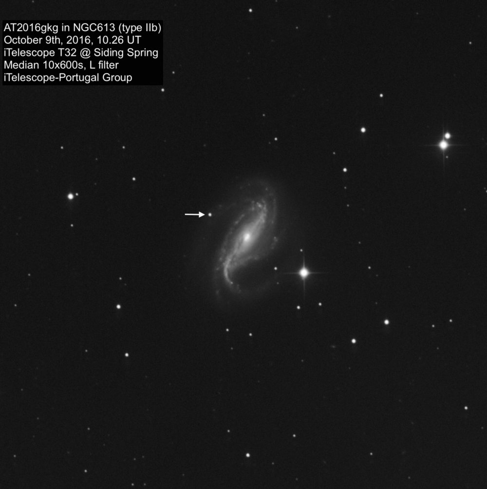 Uma supernova na galáxia NGC 613, situada a apenas 67 milhões de anos-luz na direcção da constelação do Escultor.