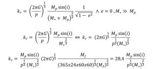 Quando um planeta extrassolar é detetado por este método, torna-se possível calcular a sua massa mínima a partir das mudanças na velocidade radial da estrela hospedeira. Uma vez que o método não conduz à obtenção da inclinação do sistema, a massa do planeta é subestimada em relação ao seu valor real e daí chamar-se massa mínima. O gráfico da velocidade radial medido em função do tempo dá uma curva característica e a amplitude dessa curva vai permitir obter a massa mínima do planeta. Um exercício prático que mostra as expressões e os cálculos utilizados por este método pode ser consultado no artigo: “Descoberto exoplaneta localizado em zona habitável mesmo aqui ao lado – Proxima Centauri b”.