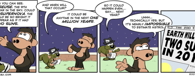 Em Janeiro de 2011, saíram artigos em jornais a dizer que Betelgeuse irá explodir em… em… em… 2012!!!