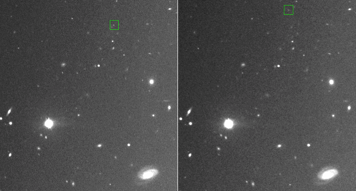 Imagens de um novo satélite irregular joviano, o S/2011 J2, detectado através de câmaras CCD montadas no telescópio Magellan-Baade do Observatório de Las Campanas, Chile.