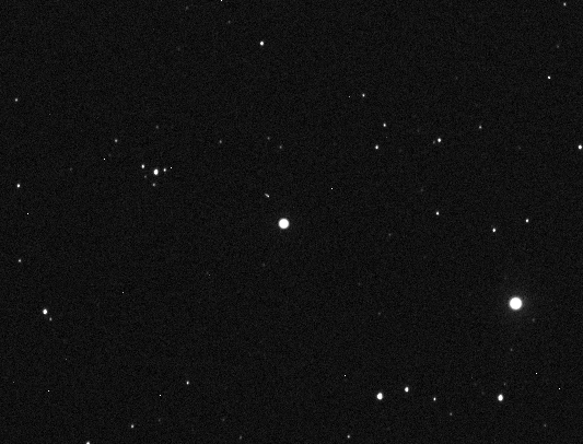 (na animação, as duas linhas que aparecem são satélites. O primeiro é o Amos 5, satélite de comunicações com magnitude 13.7, e o segundo é um satélite de TV, o Sesat com magnitude 11)