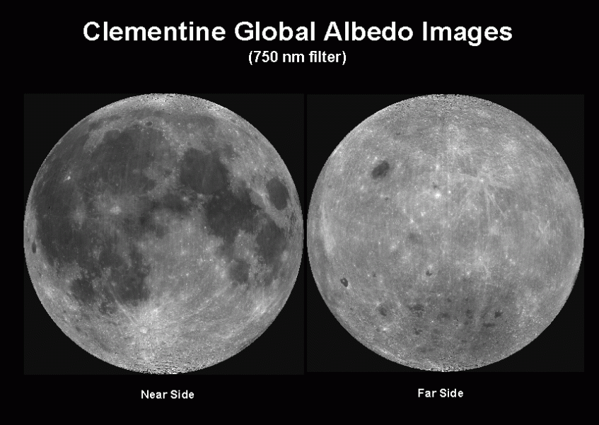 Comparação entre o lado sempre virado para nós e o outro lado da Lua, em fotos tiradas pela sonda Clementine, em 1995.