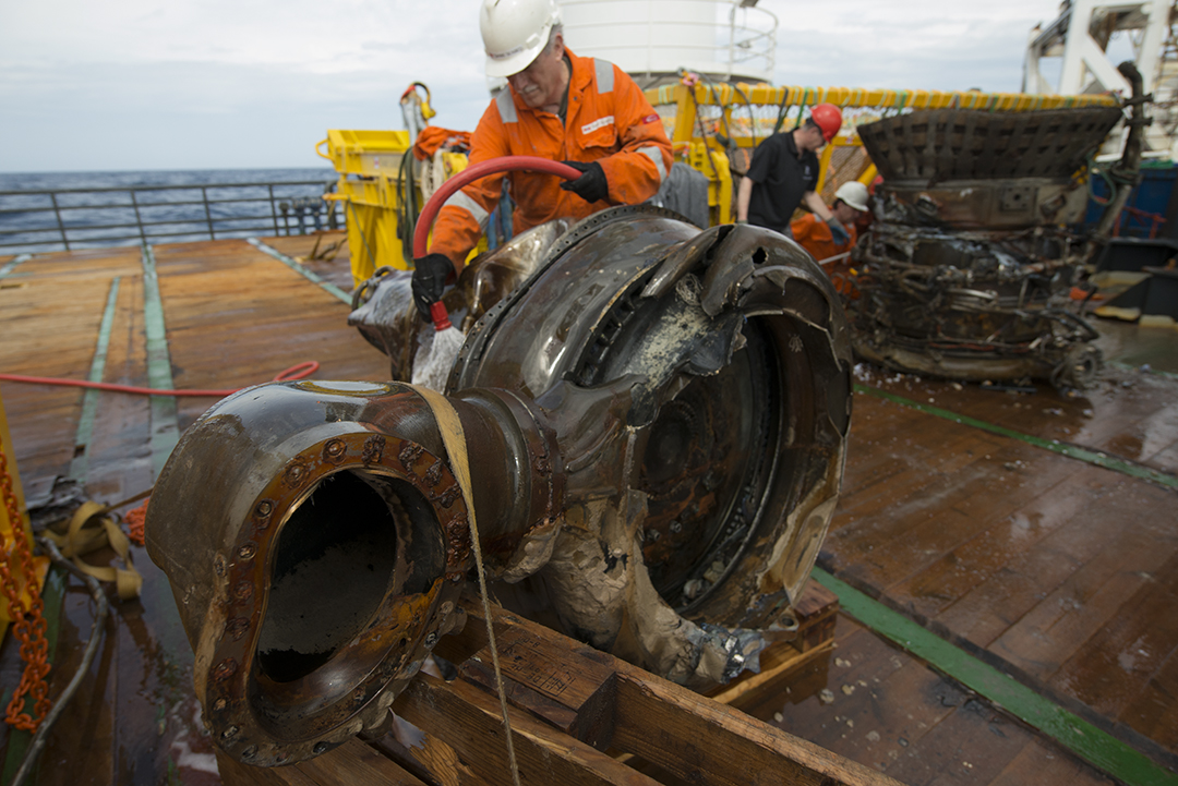 Na passada quarta-feira, dia 20 de Março, Jeff Bezos anunciou que a sua expedição conseguiu recuperar dois dos motores F-1 do foguetão Saturno V, mostrando várias fotografias e um vídeo no seu blog oficial. Contudo, muitos dos números de série das peças recolhidas já não são legíveis, o que torna difícil a tarefa de determinar se pertencem realmente à Apollo 11 ou se serão de outra missão.