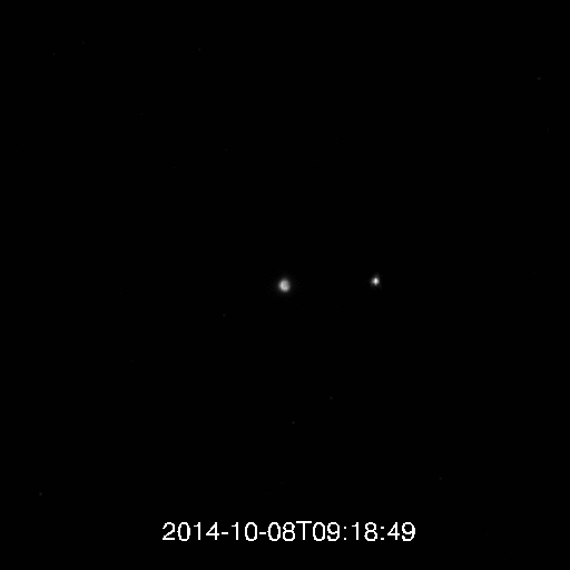 eclipse_lunar_MDIS_MESSENGER_081014O eclipse da Lua de 8 de outubro de 2014 visto da órbita de Mercúrio pela sonda MESSENGER. A animação inclui 31 imagens obtidas entre as 10:18 e as 11:18 (hora de Lisboa).