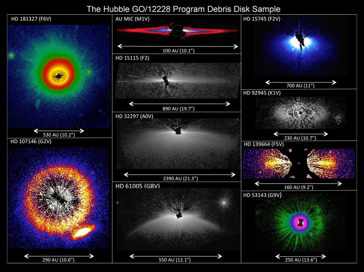 As estrelas fotografadas pelo Hubble têm idades entre 10 milhões e mil milhões de anos o que mostra que estes discos de poeiras podem formar-se em momentos distintos na evolução de um sistema planetário. As imagens foram obtidas no âmbito de um projecto liderado pelo astrónomo Glenn Schneider, da Universidade do Arizona, que pretende fazer um censo detalhado de estrelas que apresentam discos visíveis.