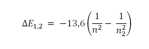 ΔE1,2 = – 13,6 [(1/n1,2) – (1/(n2,2) no qual: