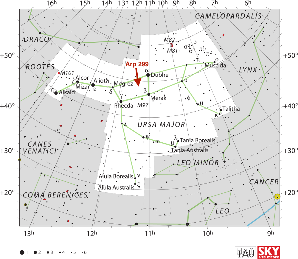 Arp 299 é um par de galáxias espirais barradas em colisão, localizado na constelação da Ursa Maior, no interior do asterismo formado pelas estrelas Dubhe, Merak, Phecda e Megrez. As galáxias foram catalogadas por observadores no século XIX como um só objecto, com a designação de NGC 3690, no New General Catalogue. Apesar de se encontrar a uma distância de 130 milhões de anos-luz, o par é visível com telescópios relativamente modestos, acessíveis aos astrónomos amadores, sob um céu bem escuro.