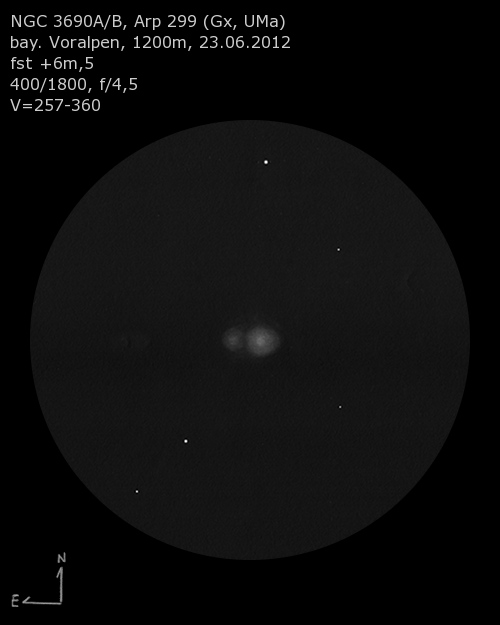NGC3690/Arp299 observada através de um telescópio amador de 16 polegadas. Fonte: http://www.deepsky-chiemgau.de/