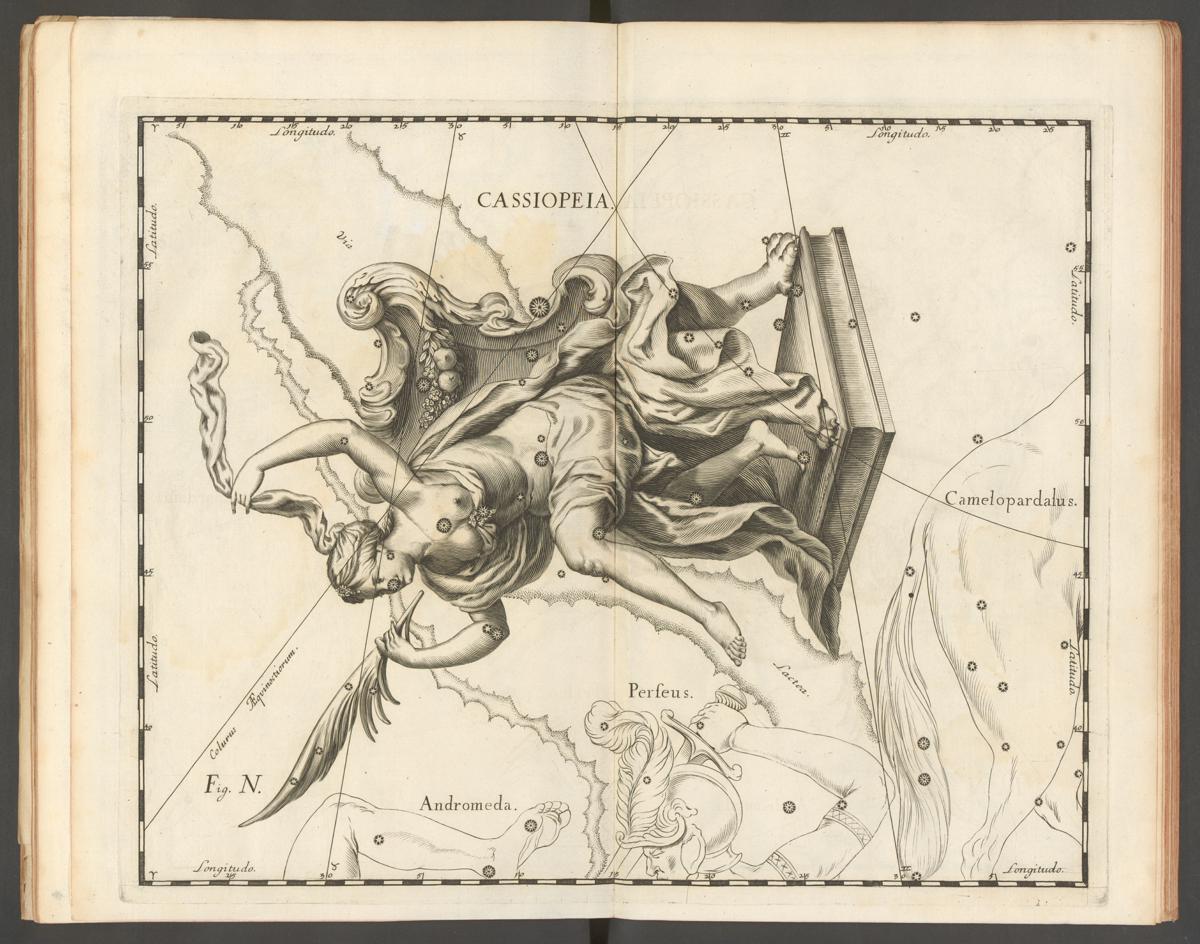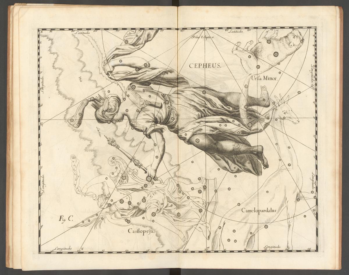 As imagens que se seguem das constelações individuais fazem parte do atlas celeste Uranographia, do astrónomo polaco Johannes Hevelius, publicado em 1687. O atlas era uma publicação científica, com o objectivo de fornecer aos astrónomos uma cartografia precisa do céu nocturno. No entanto, como se pode observar, os mitos associados a estas constelações, com uma tradição de mais de 2 mil anos, continuavam a ser desenhados nos mapas, apesar de não terem relevância científica. Esta prática é visível em atlas publicados até ao final do século XIX.