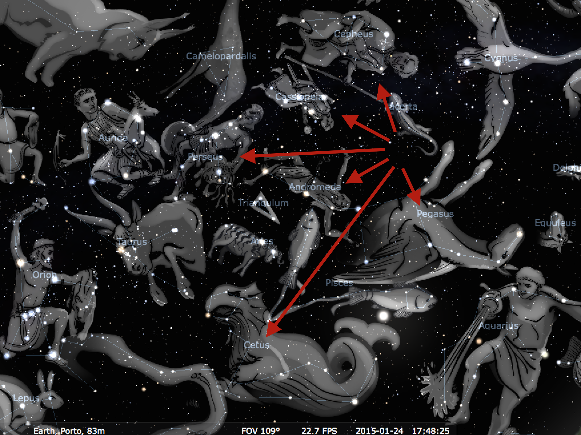 O céu nocturno está repleto de personagens, criaturas e máquinas. As diferentes culturas que olharam para o firmamento transpuseram para ele alguns dos seus mitos mais importantes. A mitologia dos povos mediterrânicos está especialmente bem representada, em particular a de origem helénica. Um dos episódios mais celebrados desta mitologia, na arte e na escrita da civilização ocidental, é o salvamento de Andrómeda pelo herói, semi-deus, Perseu.