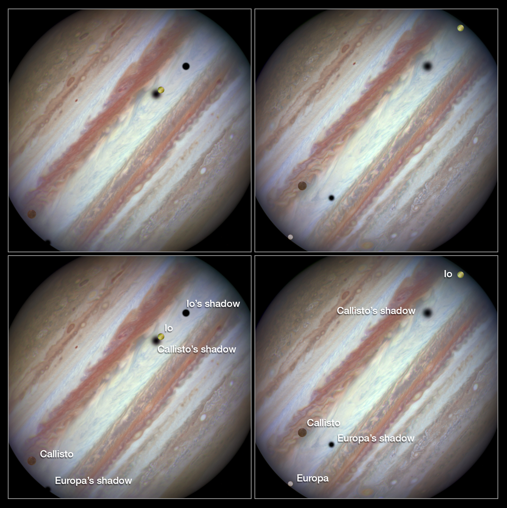 As quatro maiores luas de Júpiter têm orbitas com períodos que se estendem entre os 2 e os 17 dias, pelo que é comum serem observadas a desfilarem em frente do planeta. Contudo, os trânsitos triplos são relativamente raros em Júpiter, ocorrendo apenas uma ou duas vezes em cada década. O próximo evento poderá ser contemplado a 11 de dezembro de 2026, entre as 21:25 e as 22:51 (hora de Lisboa).