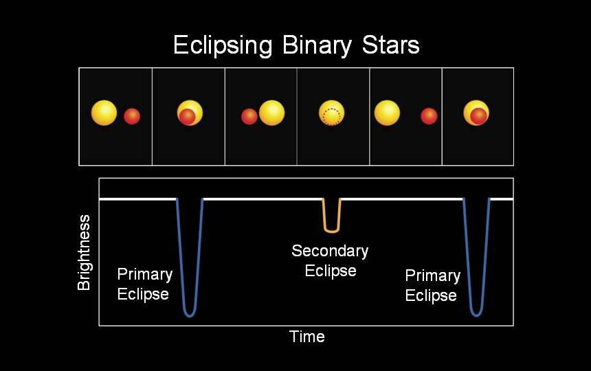 Alguns sistemas binários têm a particularidade de terem o seu plano orbital quase perfeitamente alinhado com a nossa linha de visão. Isto quer dizer que, ocasionalmente, as componentes passam uma em frente da outra, quando vistas a partir da Terra. Neste caso, diz-se que se trata de um sistema binário com eclipses.