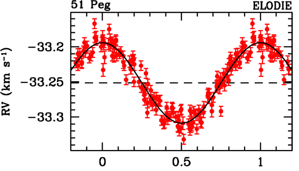 Há 20 anos atrás, o número de 6 de Outubro da revista Nature anunciava a descoberta do primeiro planeta orbitando uma estrela semelhante ao Sol. Os autores da descoberta, Michel Mayor e Didier Queloz, do Observatório de Genebra, detectaram o planeta medindo cuidadosamente o seu efeito gravitacional na estrela hospedeira, a estrela 51 do Pégaso, com um espectrógrafo muito preciso, o ELODIE. O 51 Peg b, como foi designado, não era nada do que se esperava: um gigante de gás semelhante a Júpiter orbitando a estrela em apenas 4.23 dias!