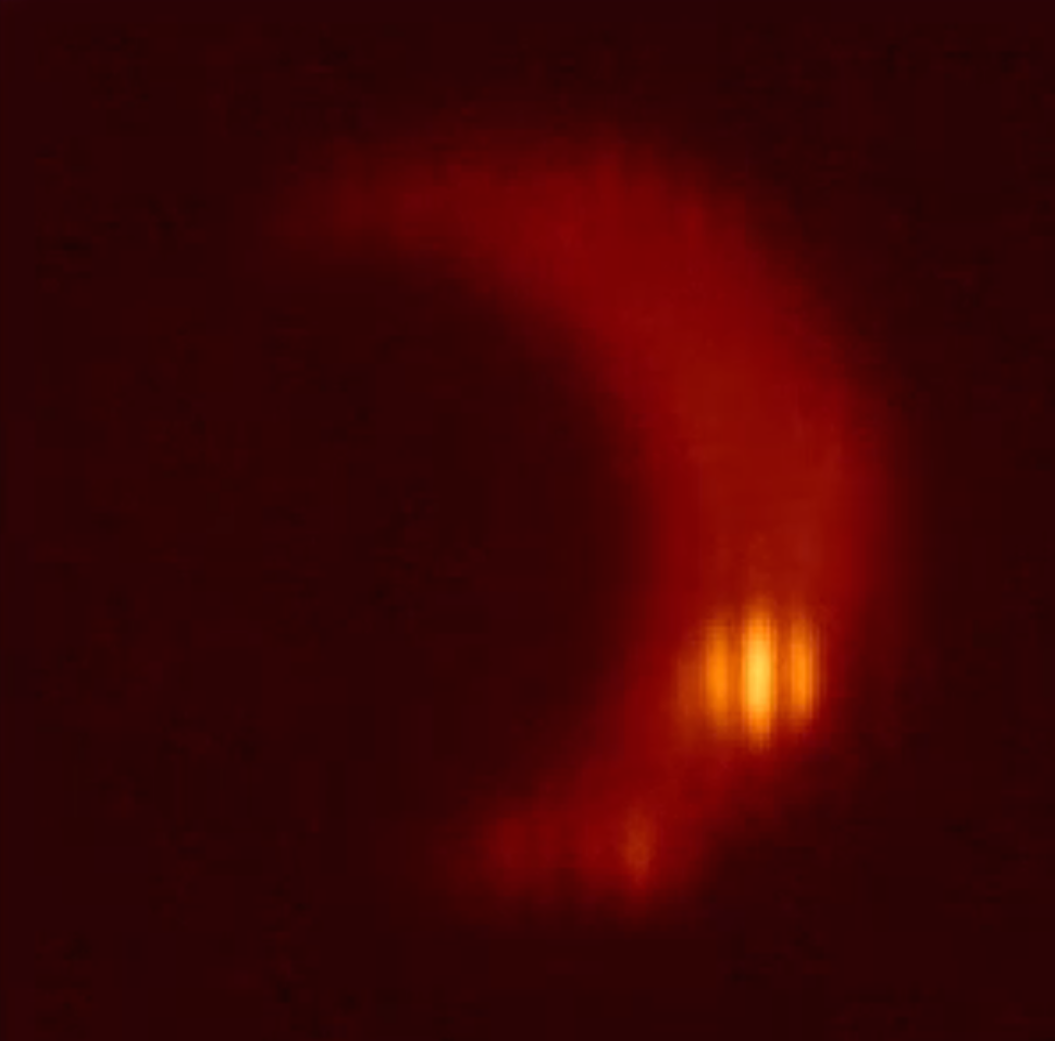 Este vídeo fenomenal, obtido com o LBTO (Large Binocular Telescope Observatory), mostra Europa (o disco escuro) passando em frente de Io (o disco vermelho com manchas amarelas), ambas luas de Júpiter. Io brilha nestas imagens obtidas no infravermelho próximo devido à sua actividade vulcânica quase constante. De facto, as duas manchas amarelas mais brilhantes são dois vulcões em actividade — Loki (ligeiramente acima e à esquerda do centro) e Pele (em baixo à direita). O gelo de água na superfície de Europa absorve os comprimentos de onda em que foram feitas as imagens pelo que o seu disco aparece escuro.