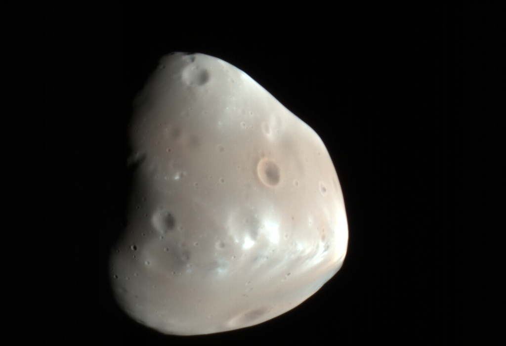 A lua Deimos numa imagem obtida pela sonda Mars Reconnaissance Orbiter, a 21 de fevereiro de 2009.
