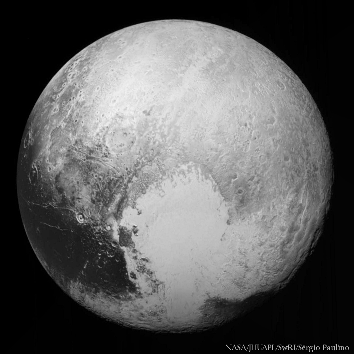 Estou a brincar, mas por aqueles lados deve estar tudo às escuras…e os sensores de imagem devem ser terrivelmente sensíveis. Até pode acontecer que utilizem comprimentos de onda mais abundantes naquela região, por emanação do próprio Plutão ou por existência de outras fontes de radiação, sem que seja o Sol, para compor as imagens a preto e branco…