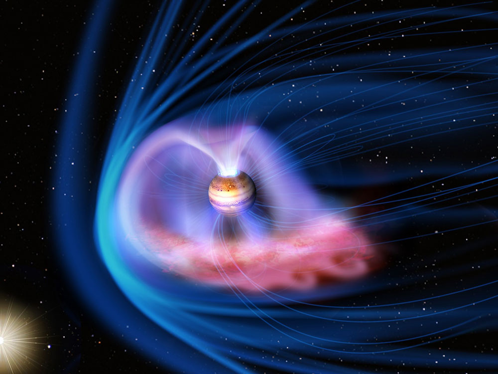 Cientistas descobriram que a interação da magnetosfera de Júpiter com os intensos fluxos de partículas gerados pelas tempestades solares pode desencadear a formação de auroras de raios X sobre as regiões polares do planeta oito vezes mais brilhantes que o normal e centenas de vezes mais energéticas que as auroras terrestres. Os resultados foram obtidos a partir de observações realizadas pelo Observatório de Raios X Chandra durante o impacto de uma gigantesca ejeção de massa coronal na magnetosfera joviana, e constituem uma verdadeira antecipação do que a missão Juno poderá encontrar quando alcançar o planeta no próximo mês de julho. Um dos principais objetivos desta missão será investigar a relação de Júpiter com o Sol e o vento solar, através do estudo das auroras e do campo magnético do planeta.