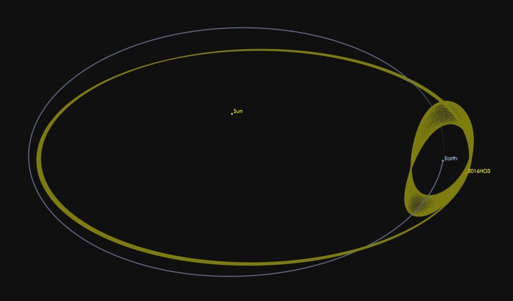 “Uma vez que 2016 HO3 dá voltas em redor do nosso planeta sem nunca se aventurar para muito longe à medida que ambos orbitam o Sol, referimo-nos a este objeto como um quase-satélite da Terra”, disse Paul Chodas, responsável do Centro de Estudos dos Objetos Próximos da Terra da NASA. “Outro asteroide, [designado] 2003 YN107, seguiu um padrão orbital semelhante durante algum tempo, há aproximadamente 10 anos, mas afastou-se desde então da nossa vizinhança. Este novo asteroide está muito mais ‘agarrado’ a nós. Os nossos cálculos indicam que 2016 HO3 tem sido um quase-satélite estável da Terra há quase um século, e deverá continuar a seguir este padrão como companheiro da Terra por mais alguns séculos.”