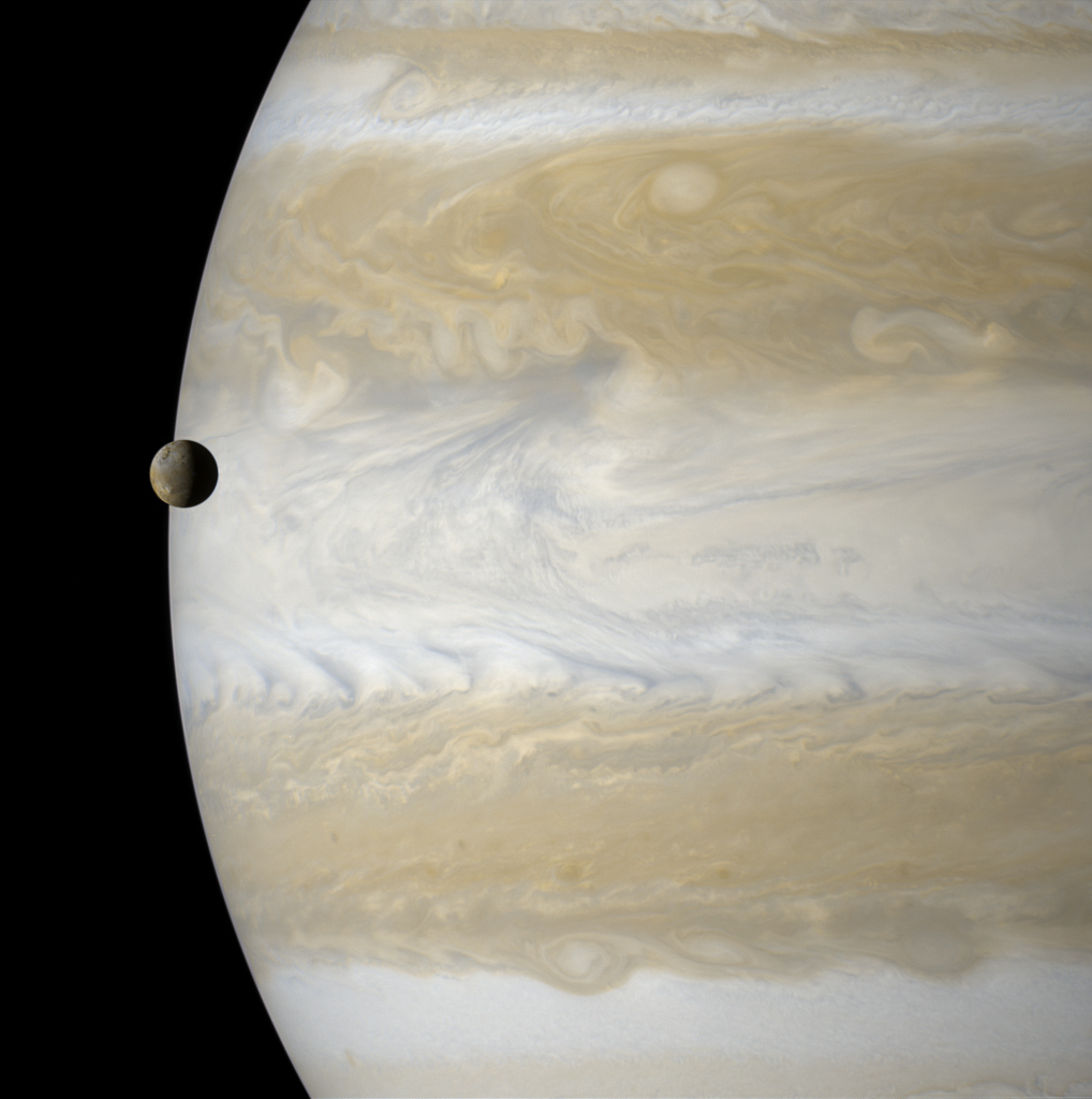 Io e Júpiter vistos pela sonda Cassini, a 29 de dezembro de 2000.