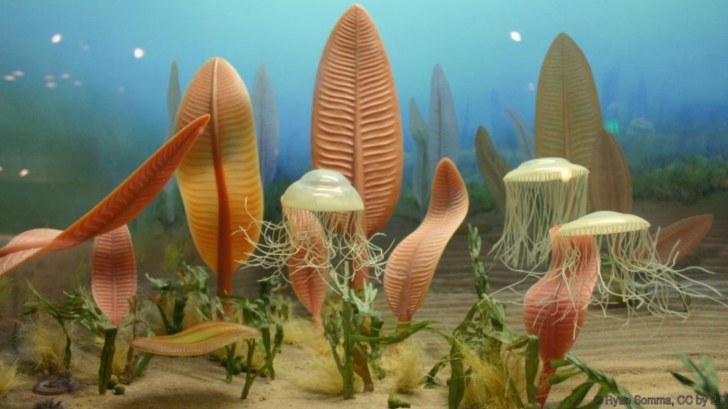 Representação artística da biota de Ediacara.