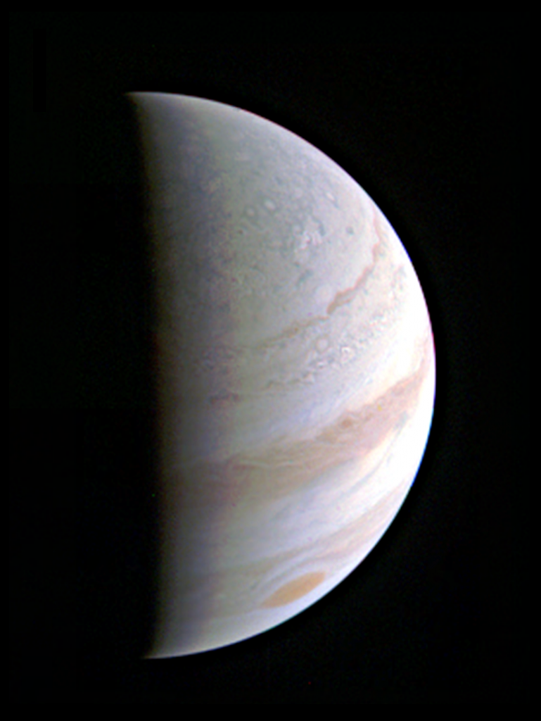 O planeta Júpiter visto pela sonda Juno, a 27 de agosto de 2016, a uma distância de 703 mil quilómetros.