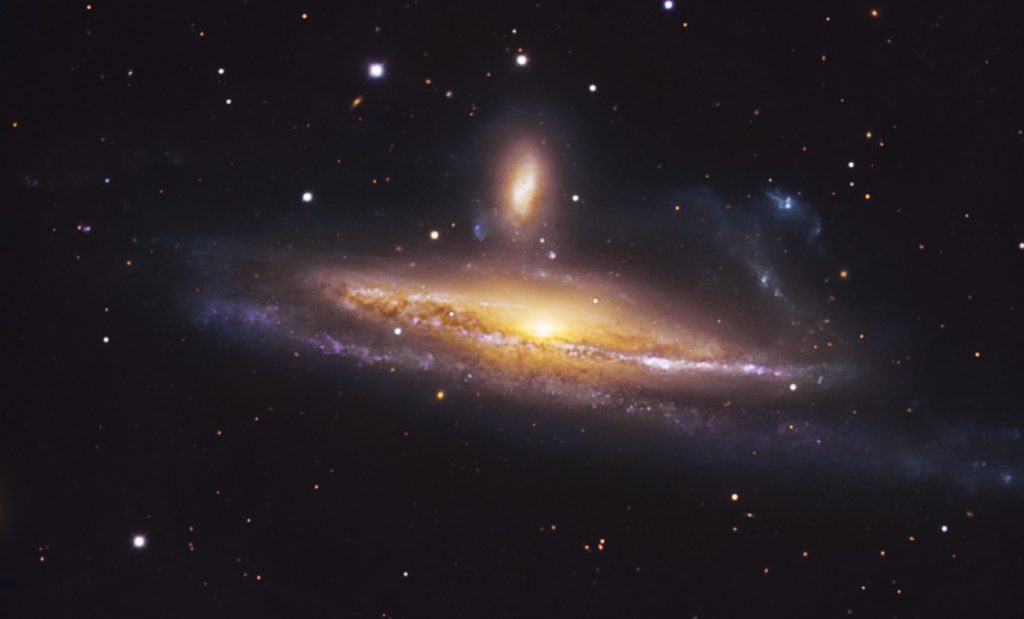 É nas margens deste longo e sinuoso rio celeste que encontramos o par de galáxias em interacção NGC 1531/2, situado a cerca de 60 milhões de anos-luz e provável membro do Enxame de Galáxias da Fornalha, cujo centro se situa poucos graus para sudoeste. A maior galáxia do par, NGC 1532, é uma grande espiral barrada com dimensões semelhantes às da Via Láctea. NGC 1531, por seu lado, é uma galáxia bem mais pequena, de aspecto amorfo, que parece arrastar consigo parte de um braço espiral da companheira. A “valsa gravitacional” das duas galáxias estimulou a produção de novas estrelas nos braços espirais da NGC 1532, repletos de maternidades estelares que brilham pela acção da radiação ultravioleta das estrelas jovens mais quentes.