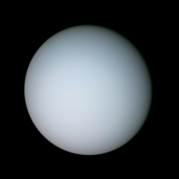 O planeta Urano visto pela sonda Voyager 2, a 14 de janeiro de 1986.