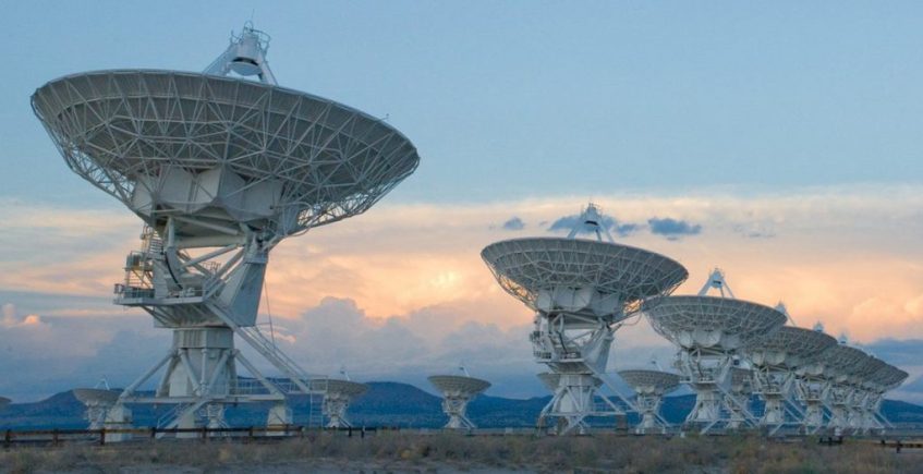 O vídeo que se segue mostra o núcleo da rádio galáxia Cygnus A, a cerca de 750 milhões de anos-luz, observado pelo Karl Jansky Very Large Array (lembram-se do grupo de radiotelescópios no deserto que detectou o sinal alienígena no filme “Contacto”?) entre 1989 e 2016. O disco brilhante central alberga um buraco negro supermaciço responsável pelos jactos de partículas relativísticas que vemos divergir em direcções opostas. A imagem de fundo, propositadamente atenuada, foi obtida em comprimentos de onda ópticos pelo Hubble.