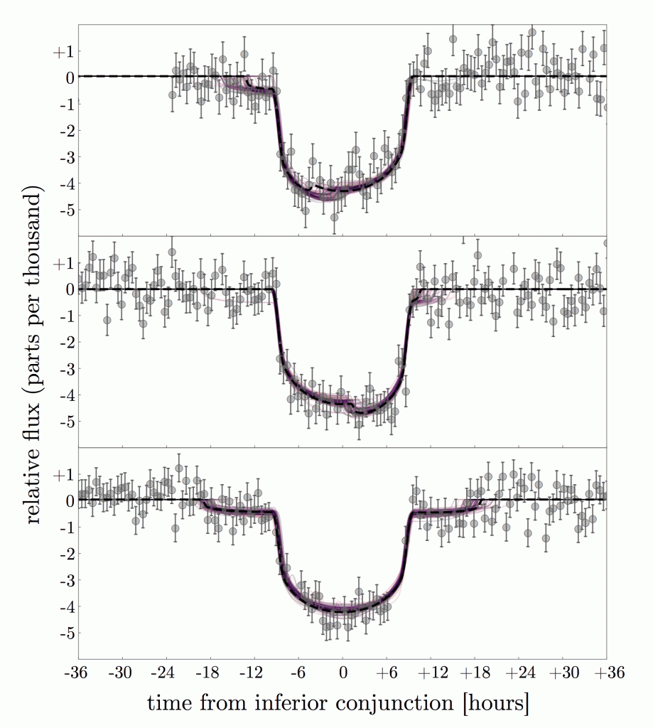 Deteção de uma possível exolua em 3 trânsitos do exoplaneta Kepler-1625b.